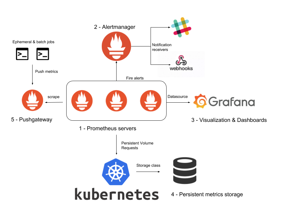 메트릭을 수집할 대상 서버에 접근해서(HTTP) 메트릭을 가져오거나, 아니면 Pushgateway를 통해서 접근할 수 없는 곳에 있는 데이터(inner server, firewall 내부의 metric 등)를 가져오는 등의 역할을 하게 된다