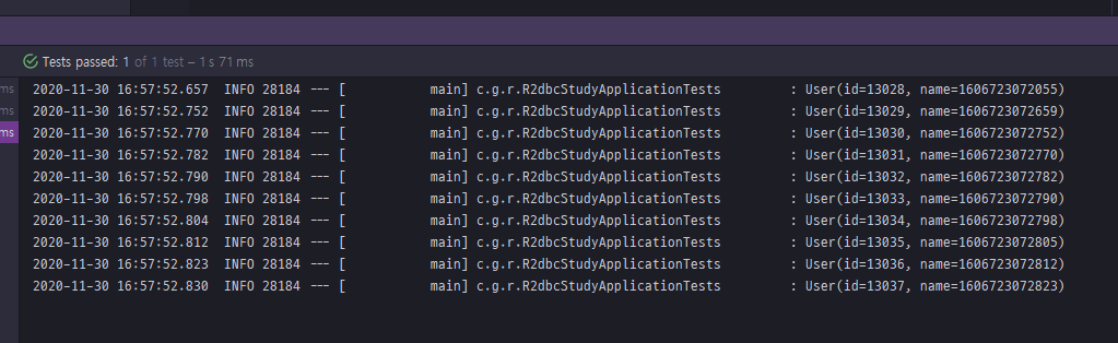 까지 설정하게 되면 R2DBC로 DB연결을 완료할 수 있다.